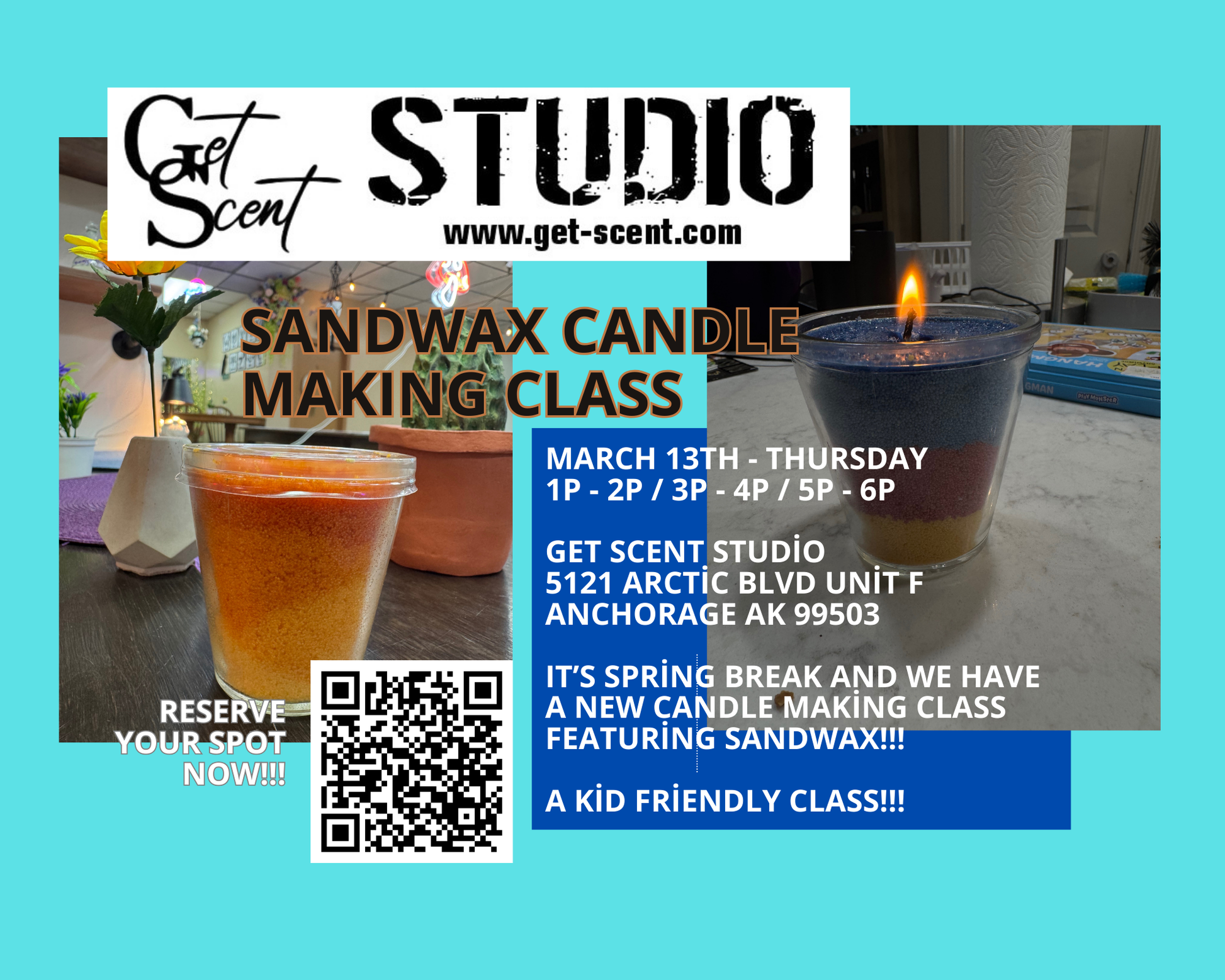 It's Spring Break!!! Join us in a series of sandwax making candles. Personalize and design your 4.5oz sandwax candle from choosing